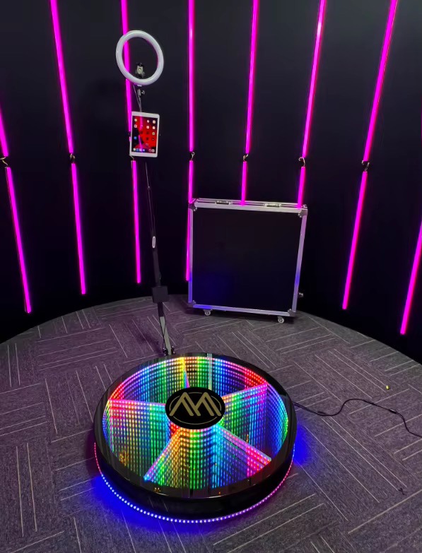 Ervaar de magie van onze 360 photobooth in twee verschillende maten, perfect voor elk feest.